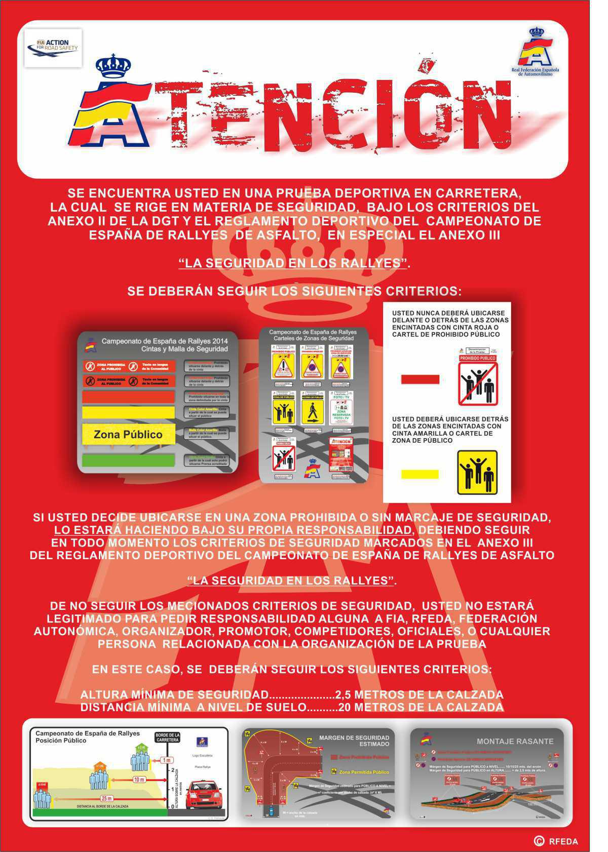 - Desplazarse por el recorrido con la carrera ya iniciada supone un grave peligro. Los vehículos compiten al límite y en cualquier momento puede producirse un accidente, ya que esperan encontrarse con la carretera totalmente despejada.